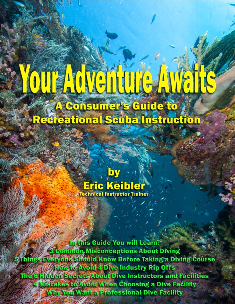 To help you find out what questions to ask, we produced a e-book entitled Your Adventure Awaits… A Consumer’s Guide to Recreational Scuba Diving Instruction where we cover what makes up a complete Open Water Certification Course. It includes things you should look for and things you should consider as well as the pitfalls and pricing schemes employed by some diving instructors and retailers. It is not a long book but we think you will find it helpful. You can find it here: