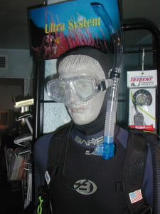 The mask is one of the most basic, yet essential pieces of equipment for our sport and has an interesting history. Since the human eye is not adjusted for seeing clearly without air in front of it, divers realized that thy needed some sort of air pocket in front of their eyes to see well underwater. With the beginning of diving divers fashioned goggles, similar to those which swimmers use today. These only covered divers’ eyes so I can imagine that it was pretty difficult to breathe comfortably underwater! With the growth of diving in the 1930s and after the World War II technological boom round masks that covered the eyes and nose became popular. Divers realized that they could increase peripheral vision by having an oval mask instead. These masks were usually homemade, as was most dive equipment, and were made of roughly cut glass and neuprene. As the sport really took off with Cousteau’s era dive masks were changed to have more specific eyepieces, separated the eyes chamber from the nose, and traded the neuprene skirt for silicone. These changes greatly improved the mask to give divers a greater visual field and make the masks more resistant to wear and tear, and are now the modern versions we know today.