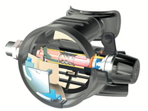 Possibly more important than the mechanical variant -piston or diaphragm- is the matter of the first stage being balanced or unbalanced. Almost without exception, good quality, high performance first stages are of the balanced design, and there’s solid logic underlying that. A balanced design will deliver gas across the first stage at a consistent rate and do so without regard to the pressure in the cylinder. An unbalanced design makes use of cylinder pressure to help “trip” the main valve, so when the cylinder is full, the valve trips easily with little effort, but as the cylinder pressure declines, the effort required to trip the valve can increase considerably. A balanced design will prneude consistent performance at any depth and cylinder pressure, making your breathing efforts likewise consistent, and as a result, your dive more comfortable. If you want a detailed explanation, come by the shop and we’ll talk you through it.
