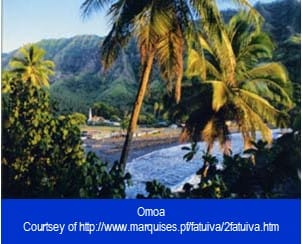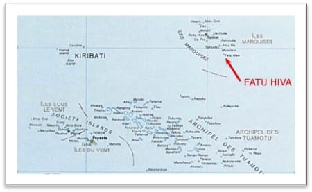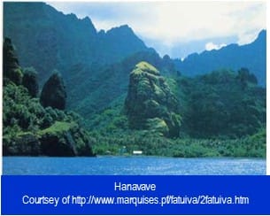 The most remote island in the Marquesas also has the distinction of being the wettest, lushest and most traditional of the islands in the group. It has no landing strip and is rarely visited by boats, but this makes for a travel experience into Polynesia as it once was. Thor Heyerdahl, of the famous Kon Tiki expeditions, spent a year and a half living on Fatu Hiva which provided the basis for his book Fatu Hiva, the Return to Nature. Mangoes, bananas, oranges and lemons thrive on the slopes of the island thanks to the plentiful rainfall. The island is home to some of the finest artisans in the Marquesas.