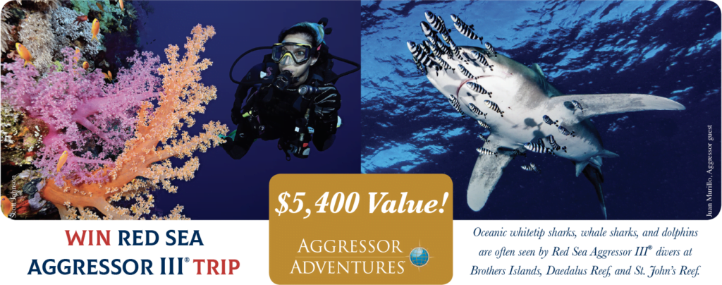 The Aggressor Liveaboard Grand Prize is an exclusive 7-night, all-expense* paid trip for two, with shared accommodations in a deluxe stateroom, on board the Red Sea Aggressor III! On this exciting dive adventure, you will enjoy the best of the Red Sea. With awesome visibility and breath-taking soft corals, the Red Sea is one of the most popular liveaboard scuba diving destinations in Egypt. Dive amongst over 1000 species of fish, colorful coral, and intriguing WWII shipwrecks.