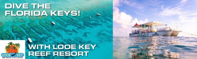The Florida Keys Dive Vacation is a 5-day / 4-night dive vacation with Looe Key Reef Resort & Dive Center. Dive the best of the Keys from the convenience of your hotel. Looe Key is famous for its healthy reefs with abundant fish and marine life. The trip includes a single room, double occupancy accommodations, three two-tank dive trips including tanks and weights.