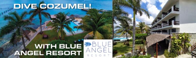 The Cozumel Dive Vacation is an exclusive 8-day / 7-night dive vacation with Blue Angel Resort & Blue Angel Diving. The trip includes a single room, double occupancy accommodations, including three meals per day. Your dive boat is just steps away from your room with the most accommodating and friendliest crew in Cozumel. Diving includes five two-tank dive trips for two, including tanks and weights. Rentals and gratuities not included.