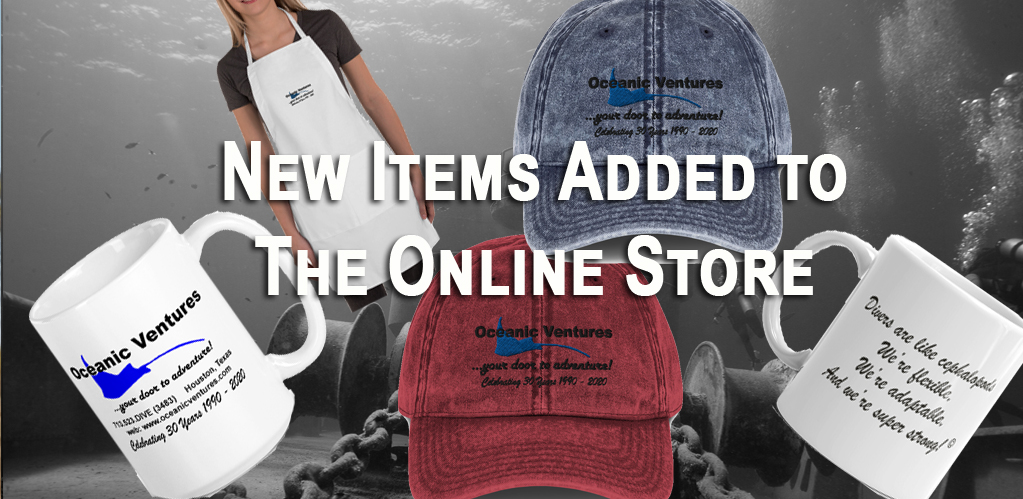If you have not looked at the Oceanic Ventures On-Line store lately, you may have missed a few new specialty items that we added. With the continuing discomfort during the COVID-19 situation, Dive Mom has been reminding everyone she talks to that “Divers are line Cephalopods – We’re flexible; we’re adaptable; and, we’re super strong!” So, we created a new coffee mug so you can remind everyone that you will get through all of this. We have also set-aside $1.00 from the sale of each mug to donate to the Houston Food Bank for their COVID-19 relief effort.