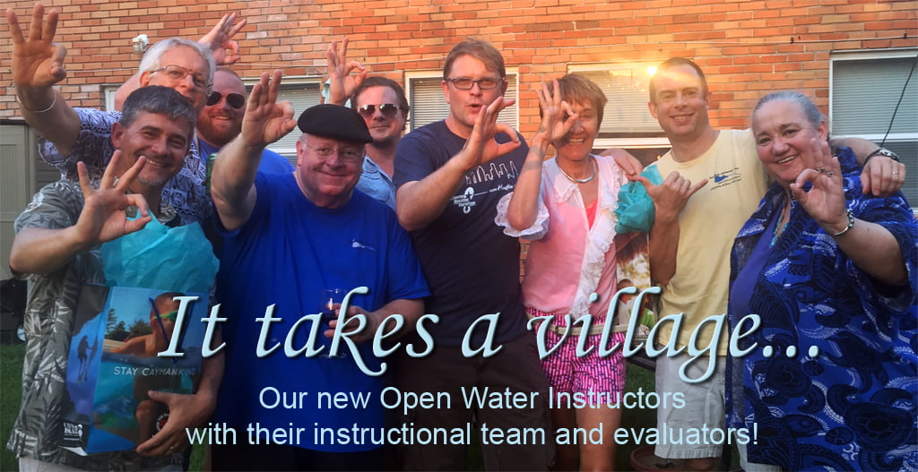 It was a cold stormy night; the air was as thick as a rubber duck. The team was stuck inside wondering when the weather would break so they could go submerge in the tropical waters. It was at this point that the duo decided that they needed to expand their horizons, look beyond the Caribbean to the once blue waters of Beautiful Blue Lagoon in Pine Prairie Texas. They made the fatal phone call to Dive Mom and the dead was done… they were now on their way to becoming a certified Open Water Instructor!