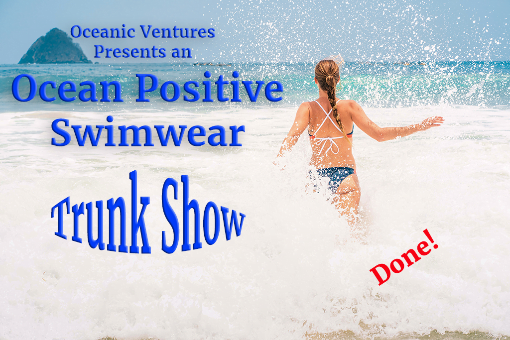Wow, we had a fun group of ladies (a few with escorts) who came my the store to meet Michele Tomillo with Fourth Element and Ocean Positive. They were here to explore the new styles and offerings of swimwear and activewear from Ocean Positive. There are stunning new colors and attractive new styles. There one one-piece suits as well as two piece suits designed to fit a variety of tastes and shapes.