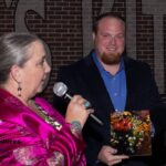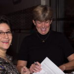 As dinner came to an end Dive Mom introduced the new Spirit of Diving Award. The recipient of the award truly embodies the spirit of diving. Having just returned from a two-week tour of the “stans” (Kazakhstan, Kyrgyzstan, Uzbekistan, Tajikistan and Turkmenistan) she was heard to say “it was nice but it was just not a dive trip, I want to go scuba diving! I loooove diving” During her first year as a certified diver she fell in love with diving and completed one-hundred (100) dives including a lot of diving in the local lakes in the winter (a.k.a. dry suit scuba diving). She continued that trend achieving her 300th dive, in her third year of diving, in Komodo Indonesia. If you ask her she will tell you “I just love diving!” She is always excited about learning new things, trying new equipment and challenging herself to learn more. She even has a diving sticker on her motorcycle helmet. This year’s recipient is Susan Long.