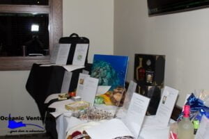 The cocktail hour also saw the opening of the Silent Charity Auction benefiting the Oceanic Ventures Foundation a 501 (c)(3) organization. The items in the auction varied from Rum to a complete garden makeover and included such things as handicrafts from Ecuador and Fiji to Jewelry and luggage. The divers were very generous to the charity even contributing directly to helping promote eco-education in Cozumel, sending books to Utila, purchasing bikes for the Bonaventure Boys Home in Grand Cayman, and uniforms and books for schoolchildren in Fiji at the Holy Cross School in Wariki.