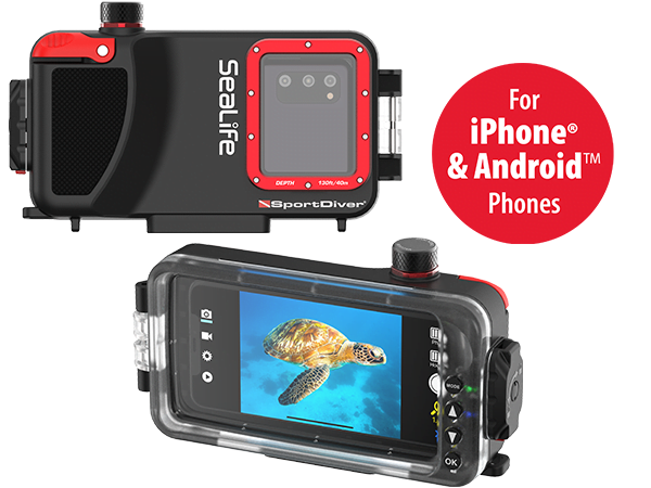 The SportDiver underwater housing works with iPhone® 7 through the 13 Pro Max and most Android phones. Check if a phone fits and is compatible here. The SportDiver includes a color correcting red filter that brings back lost underwater colors. The best way to get breathtaking images and brilliant video underwater with your phone is with the Sea Dragon 3000F or the complete SportDiver Pro 2500 smartphone housing & photo-video light set.