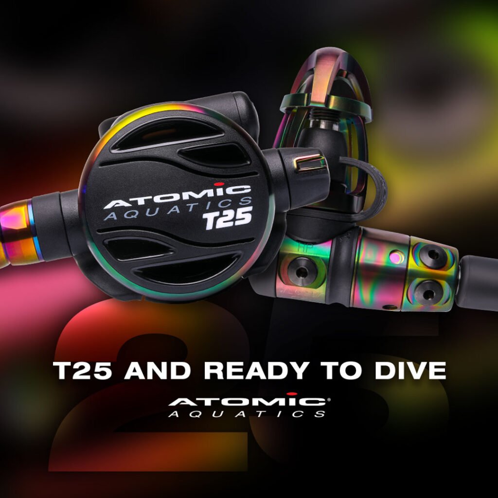 Oceanic Ventures has just received our first Atomic T25 Limited Edition Anniversary Air Delivery System (aka Regulator)! This is a very limited edition titanium regulator. We are very excited to have been selected to receive a unit out of the first build cycle of the T25’s.