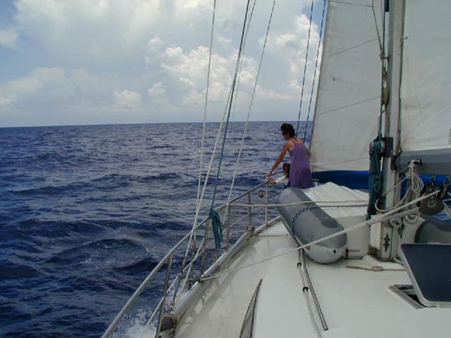 The Galapagos are 2100 miles and thirteen days behind us. The Marquesas are 900 nautical miles and about one week ahead. We’ve seen nothing on the horizon but blue water and white clouds for days and days. Except for the occasional night squalls, our weather has been picture perfect for the trip.