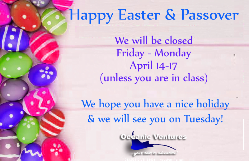 For the first time in a long time, the entire Oceanic Ventures staff are on holiday (ok,1 of them is teaching a class) So, we will be closed Friday April 14 through Monday April 17. We will reopen at our normal time on Tuesday April 18. Come See What.. Read More