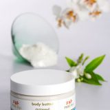 Body Butter – This super moisturizing cream will instantly revive dry skin. A unique blend of cold-pressed coconut, dilo, macadamia, and sikeci oils rapidly hydrate skin and lock in moisture to keep your skin perfectly hydrated and nourished. Milk proteins provide an added benefit, setting in motion firming processes to reduce the appearance of fine lines – while soy and passionflower gently soothe and calm stressed skin. An excellent cream indulgence all year round.